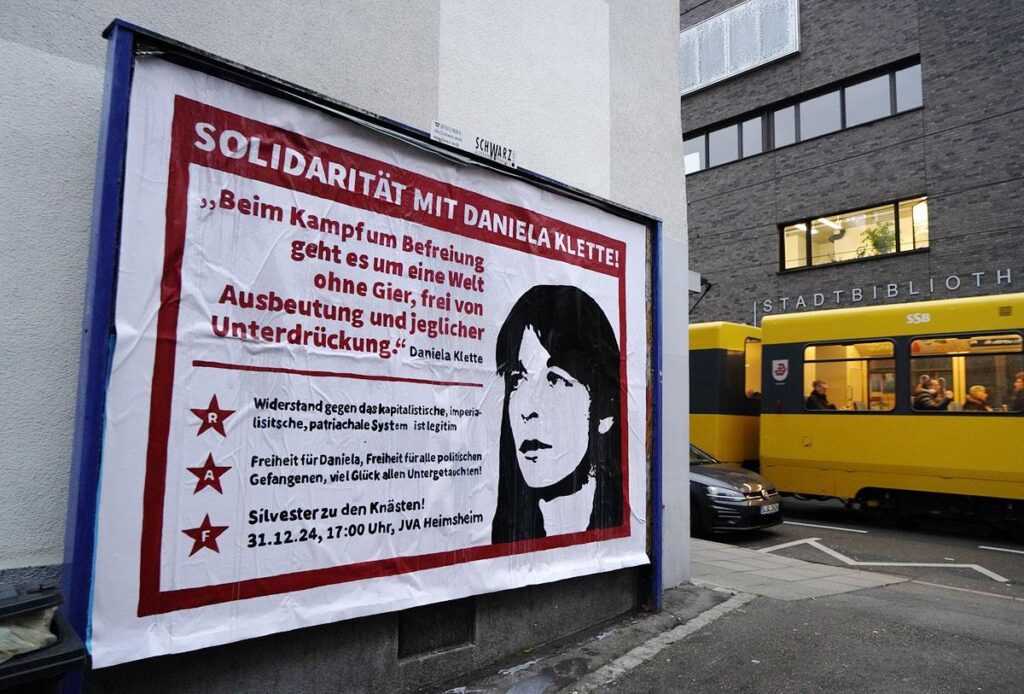 Arrestation de Daniela Klette à Berlin. Elle est immédiadement placée à l’isolement total. Burkhard Garweg échappe de peu à l’arrestation et enverra des saluations de la clandestinité.