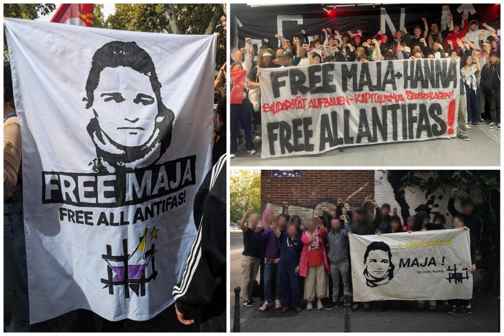 Pour soutenir la militante antifa non-binaire Maja emprisonnée en Hongrie, son comité de soutien appelait à une journée d’action le 13 septembre dernier pour exiger son retour en Allemagne (voir notre article). Dans ce cadre, des actions ont eu lieu dans plusieurs villes allemandes C’est ainsi qu’un cortège de soutien aux antifas emprisonnés a été organisé à Dresde (voir ici), un rassemblement a eu lieu à Munich (voir ici) ou encore une action a recouvert de peinture le tribunal régional supérieur de Berlin (voir ici). D’autres initiatives ont également eu lieu en Suisse, Autriche, Belgique, en France et ailleurs. Des organisations membres du Secours Rouge International y ont participé, comme à Zurich, Bruxelles ou encore Toulouse.