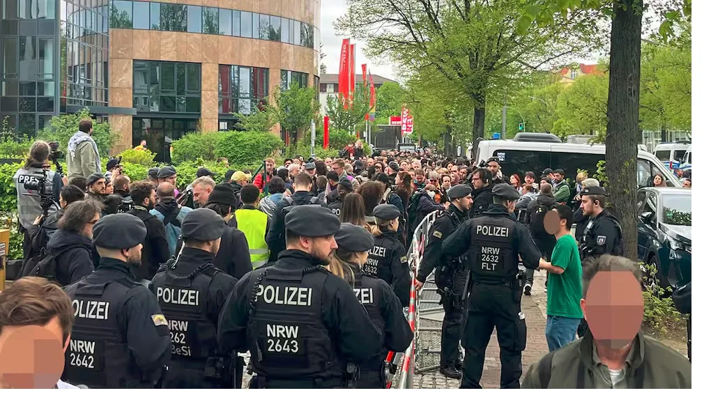 Un « congrès sur la Palestine » de trois jours débutait ce vendredi 12 avril à Berlin-Tempelhof. Dans l’après-midi, le congrès a été interrompu par la police pour être ensuite interdit pour samedi et dimanche. Une très importante présence policière avait été déployée autour du centre accueillant le congrès. L’adresse de l’évènement avait été gardé secrète et dévoilée lors d’une conférence de presse le matin même. La police a interrompu le congrès lors de la retransmission d’une vidéo de Salman Abu Sitta, un chercheur palestinien. L’électricité ayant été coupé pour mettre fin à la retransmission. Après une décision de justice, l’évènement a été interdit. Abu Sitta, qui vit en Grande-Bretagne, est sous le coup d’une interdiction d’entrée en Allemagne et d’une interdiction d’activité politique. Vendredi, environ 900 agents devaient être déployés. Plusieurs personnes ont été arrêtées lors de cette journée.
