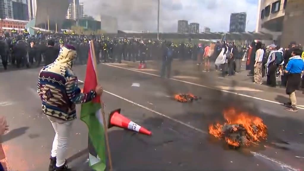 Plus de 1 000 agents ont été déployés pour réprimer environ 25 000 manifestants anti-guerre ce jeudi à Melbourne, ce qui a donné lieu à de violents affrontements. Un événement international de trois jours, ” Forces terrestres 2024 “, permet aux gouvernements et à l’industrie mondiale de l’armement de conclure des accords. Parmi les exposants figurait l’entreprise publique israélienne Aerospace Industries, un fournisseur d’armes clé pour les forces Israéliennes. Des manifestants ont jeté des projectiles sur les agents, des pierres, tomates ou excréments. Certains visiteurs ont été pris à partie par les militants. La police a procédé à des lancés de gaz lacrymogène et de gaz au poivre, des balles non létales ont été tirées, des unités de police montées à cheval ont chargé pour dispersé quelques groupes d’activistes. De nombreux manifestants portaient des drapeaux palestiniens et des slogans pro-palestiniens résonnaient dans les rues.