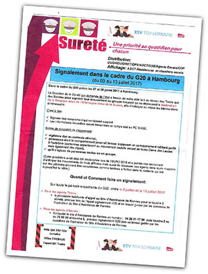 Dans les bureaux de la SNCF de l’est de la France, une note interne concernant la « sureté » est apparue. Elle demande aux agents SNCF de signaler (entre autres) les « comportements qui laissent à supposer un comportement militant porté à l’extrême (personne appartenant au mouvement zadiste venant de Notre Dame des Landes mais également des Alpes) », spécialement dans les trains à destination de la Belgique, de l’Allemagne et de la Suisse. Le document a été révélé par le syndicat Sud Rail qui dénonce que les demandes de flicage sont de plus en plus nombreuses, notamment contre les migrants.