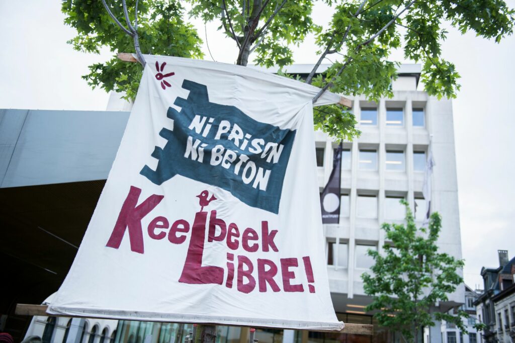 Durant l’été 2014, le terrain du Keelbeek, à Haren, à la périphérie Nord de Bruxelles, où l’Etat veut construire la plus grande prison de Belgique, est occupé par des opposant.e.s au projet. Sans attendre les permis, la Régie des bâtiments démarre les travaux à plusieurs reprises. Mais à chaque fois, les engins de chantier sont repoussés par les zadistes. Le 20 mai 2015 se déroule l’audience publique de la commission de concertation concernant le projet de maxi-prison. Le même jour, une quinzaine de zadistes décident de manifester à l’intérieur de la Régie des bâtiments. Dénouement imprévu : la maquette de la maxi-prison, exposée dans le hall d’entrée, est détruite. Une enquête est ouverte et 4 personnes, pourtant non-impliquées dans la destruction, se retrouvent devant les tribunaux.
