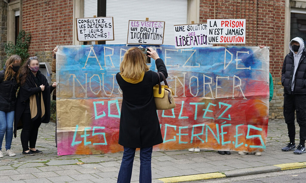 Jeudi 19 novembre, les familles des prisonniers ont manifesté devant la la prison de Huy pour réclamer un droit inconditionnel aux contacts physiques avec leurs proches emprisonnés. Le retour des contacts physiques entre les détenu.e.s et leurs proches était, en effet prévu le 14 septembre, après 186 jours sans aucun contact. Les syndicats d’agent.e.s pénitentiaires avaient cependant posé un préavis de grève contre l’assouplissement des conditions de visites. L’administration pénitentiaire a alors proposé des mesures sanitaires plus restrictives, telles que la mise en quarantaine de deux semaines suite à une visite familiale. Les manifestant·es exigent le rétablissement des contacts physiques lors des visites à table et le retour des visites hors surveillance. Ils refusent également la mise en quarantaine de deux semaines et toute restriction supplémentaire. La Clac (Collectif de Luttes Anti-Carcérales) a participé à la manifestation aux cotés des familles des prisonniers. Plus d’infos ici.