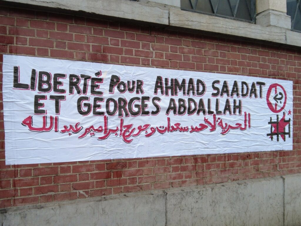 Du 15 au 23 janvier 2021, le réseau Samidoun appelaient à une semaine internationale de mobilisation pour la libération d’Ahmad Sa’adat, secrétaire général du FPLP emprisonné par l’occupation israélienne (voir notre article). Plusieurs initiatives ont eu lieu en Belgique, aux Pays-Bas, en Allemagne, en Suède, en France, en Irlande, en Angleterre, en Italie, en Suisse, en Grèce, en Tunisie, aux États-Unis, aux Philippines et en Palestine. Dimanche 24 janvier à Paris, une soixantaine de personnes se sont rassemblées afin d’exiger la libération de Sa’adat mais aussi Georges Abdallah et tous les prisonniers palestiniens. Parallèlement, un stand de solidarité a été organisé à Toulouse (voir notre article) et des photos de soutien ont été réalisées à Genève (voir ici). À Bruxelles, plusieurs collages ont eu lieu afin d’exiger la libération de Sa’adat et Georges Abdallah.