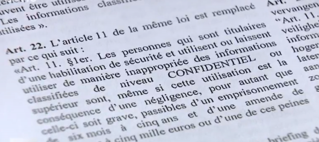 Début mai 2019, le conseil des ministres approuvait en première lecture un avant-projet de loi porté par le cabinet du Ministre de la Défense et des Affaires Étrangères. Cet avant-projet vise à renforcer la protection des informations classifiée en la rendant conforme aux obligations internationales de la Belgique, avec notamment un quatrième niveau de classification. En plus de « très secret », « secret » et « confidentiel », la mention « restreint » doit voir le jour. Le texte contient également un article qui stipule « la possibilité que les personnes qui ne sont pas titulaires d’une habilitation de sécurité et qui utilisent des informations classifiées sont passibles d’un emprisonnement d’un mois à trois ans et d’une amende de cent euros à cinq mille euros. » Le conseil d’état, dans un avis remis en juin, estime que la formulation très large d’un tel article permettrait de poursuivre les journalistes et les lanceurs d’alerte qui révèlent des secrets d’état. L’avant-projet devra encore passer en seconde lecture au conseil des ministres puis au parlement.