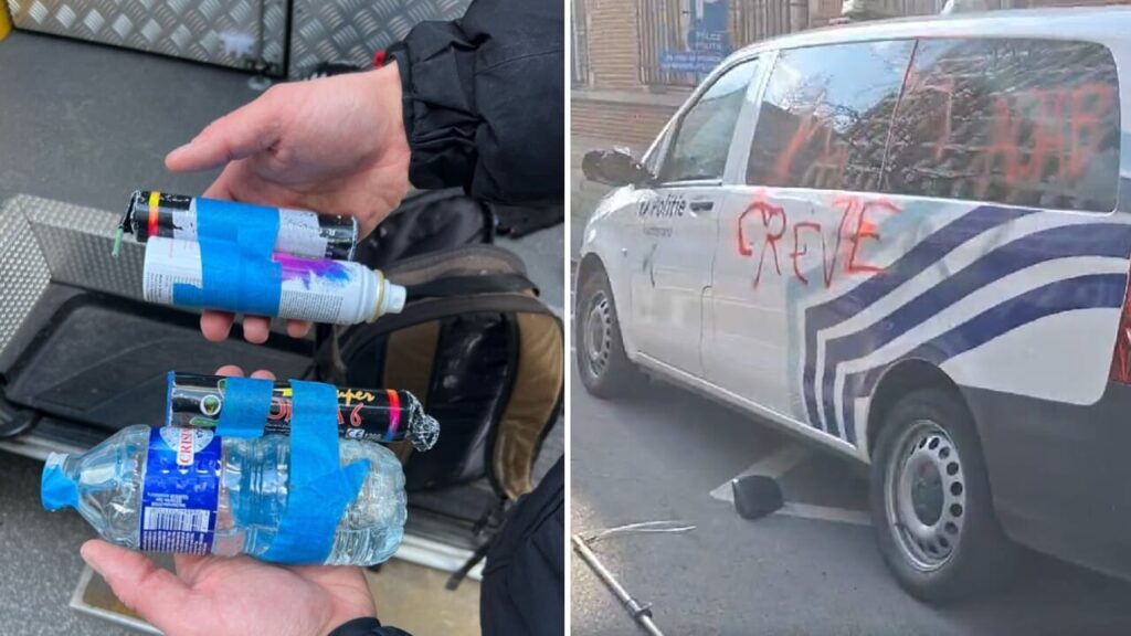 1500 personnes ont manifesté hier samedi à Bruxelles contre les violences policières. La manifestation est partie de la place du Luxembourg et a traversé le centre ville pour terminer place du Congrès. Le cortège a effectué plusieurs arrêts sur le parcours, afin de permettre à diverses personnes de prendre la parole, notamment des proches de victimes de la violence policière, mais aussi pour se recueillir en mémoire des personnes assassinées. De nombreux tags ont été réalisés le long de ce parcours. Des véhicules de police et de la STIB ont également été tagués et leurs vitres brisées. Dix arrestations ont eu lieu après la manifestation. Au moins huit de ces arrestations seraient judiciaires, dont une qui concernerait un jeune manifestant arrêté avec des engins pyrotechniques (photo de gauche diffusée par la police de Bruxelles).