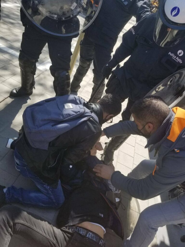 Depuis plus d’un mois, des personnes sans papiers se réunissent deux fois par semaine pour des occupations politiques à différents endroits de Bruxelles. Une centaine de personnes ont manifesté, au carrefour entre la rue de la Loi et l’avenue des Arts pour des critères objectifs et permanents pour une politique de régularisation des personnes vivant sans papiers sur le territoire belge. Les manifestants ont été encerclés par les forces de l’ordre sous prétexte qu’ils avaient empietés sur le carrefour. 62 manifestants ont été arrêtés. Un rassemblement solidaire s’est tenu devant le commissariat de la rue Royale.