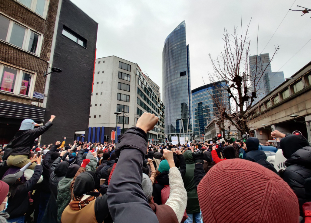 16h30 : D’autres groupes de manifestant·es sont également dispersés dans les petites rues proche de la Rue de Brabant. Des affrontements ont lieu. Il y aurait eu des charges policières.