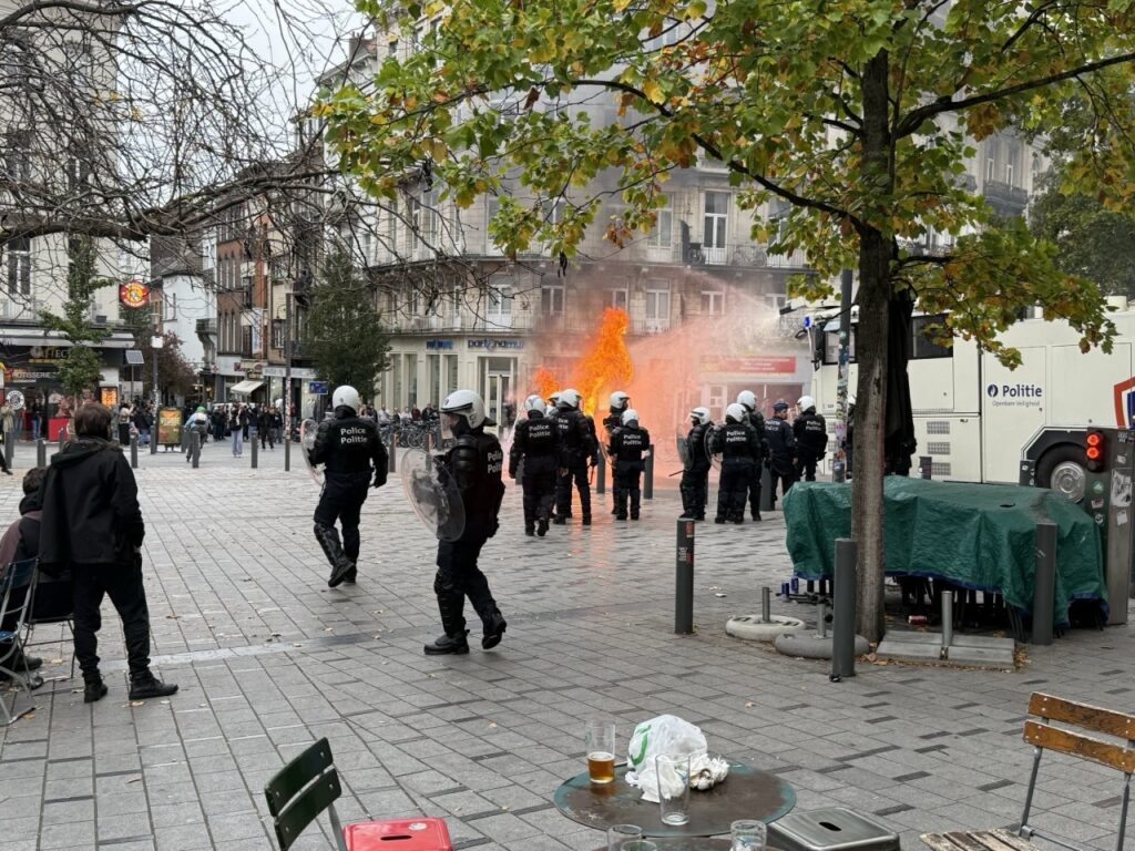 - 16:02 : les affrontements seraient finis à Gare du midi. On nous signale néanmoins plusieurs personnes arrêtées.