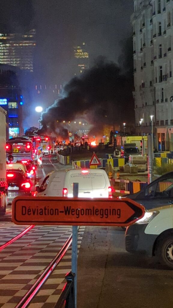 - 07:00 : blocages en plusieurs points autour d’Yser, des barricades ont été dressées. Le tunnel aussi est envahi par les manifestant·es.