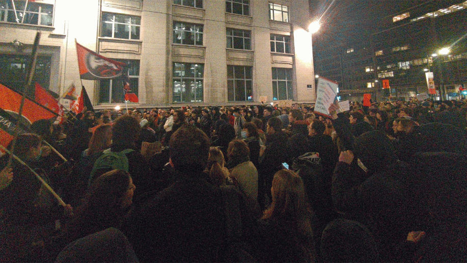 Des affrontements ont eu lieu entre la police de Bruxelles et des manifestants antifascistes lors d’un rassemblement de plusieurs centaines de personnes contre la venue du président du Rassemblement National, Jordan Bardella. Ce dernier était attendu à à la Maison de la Hongrie afin de présenter son premier livre et donner une séance de dédicaces. Dès 18h00, les manifestants se sont rassemblée au croisement de l’avenue des Arts et de la rue de la Loi, à l’appel de plusieurs collectifs. Une tentative de forcer le barrage policier a été repoussée à la matraque et au gaz lacrymogène. Une manifestation sauvage s’est mise en route, attaquant le siège du VB au passage, place Madou, et a pu atteindre le rond-point Schuman où la police a procédé à une violente charge. La police a tiré des cartouches lacrymogènes et fait usage de canons à eau sur la foule. Il y aurait une vingtaine d’arrestations – les antifas arrêtés ayant été transférés aux casernes d’Etterbeek.