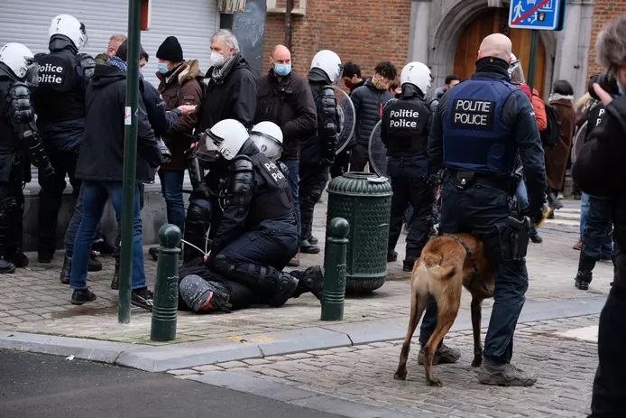 Le bilan final de la répression du rassemblement de dimanche contre la justice de classe à Bruxelles est de 245 arrestations administratives, car outre la nasse de la gare centrale (voir notre article), d’autres arrestations groupées ont eu lieu, notamment du côté du centre ville. La police locale de Bruxelles-Ixelles a procédé à 232 arrestations administratives, dont 86 visaient des mineurs. Il faut ajouter à ce nombre 13 arrestations administratives, dont 5 concernent des mineurs, effectuées par la police de Bruxelles-Nord (Schaerbeek, Saint-Josse-ten-Noode et Evere). Les arrestations et les détentions ont été faites avec la brutalité ordurière habituelle (« Ferme ta gueule », « Ca pue la femme ici », « Baisse la tête salope », coups, détention aux mépris de la sécurité sanitaire à 30 par cellules sans possibilité d’aller aux toilettes, personnes libérées loin de chez elles après le couvre feu, etc.). Par ailleurs, les policiers sont entrés cagoulés dans plusieurs cellules avec bouclier et matraque pour frapper et étrangler les personnes arrêtées. Dans d’autres cas les personnes qui refusaient de baisser les yeux se faisaient gifler. Une des personnes brutalisée s’est faite cracher dessus par plusieurs policiers. Les policiers ont également accéder aux appareils électroniques des personnes arrêtées pour supprimer des images les mettant en cause. Un rassemblement de protestation a eu lieu devant le conseil communal de Bruxelles, ainsi qu’une démarche pour une plainte collective contre la police.