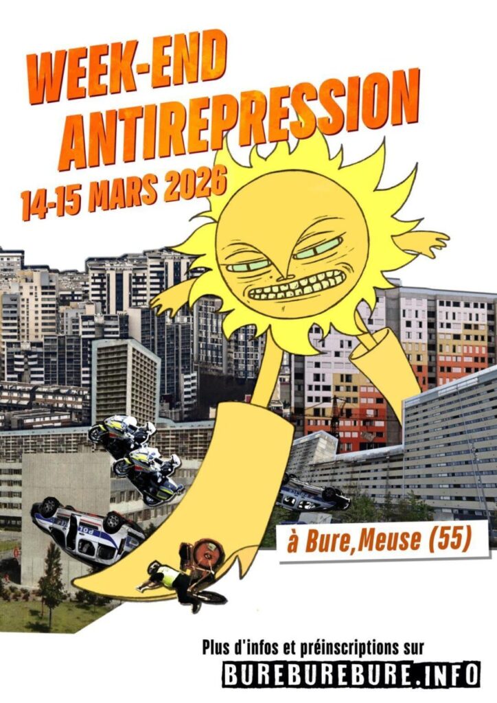 À Bure, la contestation du projet de centre d’enfouissement nucléaire s’inscrit dans un contexte de durcissement répressif. L’Agence nationale pour la gestion des déchets radioactifs (Andra) finance notamment la présence permanente d’un escadron de gendarmes mobiles et prévoit la construction d’un cantonnement dédié, estimé à 10 millions d’euros, destiné à loger et installer durablement ces forces d’ici 2027. Parallèlement, une procédure d’expulsion vise un lieu collectif emblématique de la lutte. Face à la multiplication des dispositifs de surveillance, poursuites judiciaires et violences policières, deux journées de rencontres antirépression sont organisées pour partager outils et stratégies à travers ateliers et discussions, précédées d’une projection le vendredi soir. Préinscription anonyme via forms.42l.fr ; informations et mises à jour sur bureburebure.info.