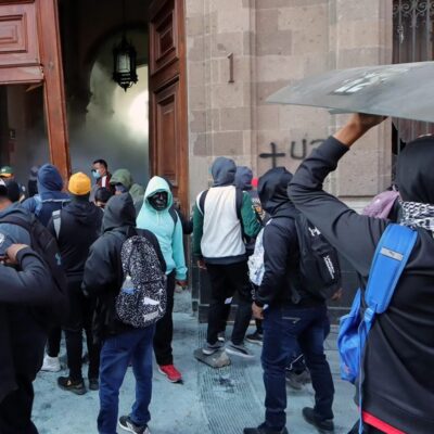Plusieurs dizaines de personnes, qui manifestaient mercredi contre l’enlèvement et la disparition en 2014 de 43 étudiants de l’école normale d’Ayotzinapa, ont enfoncé une des portes du palais présidentiel à Mexico avec une une camionnette pour enfoncer la porte avant de pénétrer dans le palais le visage masqué.