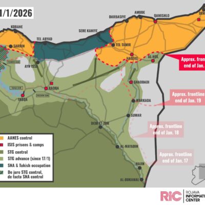 Vingt-neuf jeunes internationalistes, venus de 14 pays pour exprimer leur solidarité avec le peuple du Rojava face aux attaques de HTS et de l’État turc, ont été interpellés à l’entrée du district de Birecik (Urfa) par la gendarmerie. Qualifiés de « personnes à risque » après un contrôle administratif, ils ont été placés en garde […]