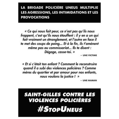 Une campagne contre les violences policières de la brigade Uneus aura lieu la semaine du 14 au 20 décembre.