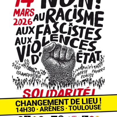 Une manifestation contre le racisme, les fascistes et les violences d’État est organisée le 14 mars à Toulouse dans le cadre d’une journée nationale de mobilisation dans plus de 100 villes. Initialement prévue dans le centre-ville, la marche a été contrainte de modifier son parcours après la décision de la préfecture de la Haute-Garonne d’interdire […]