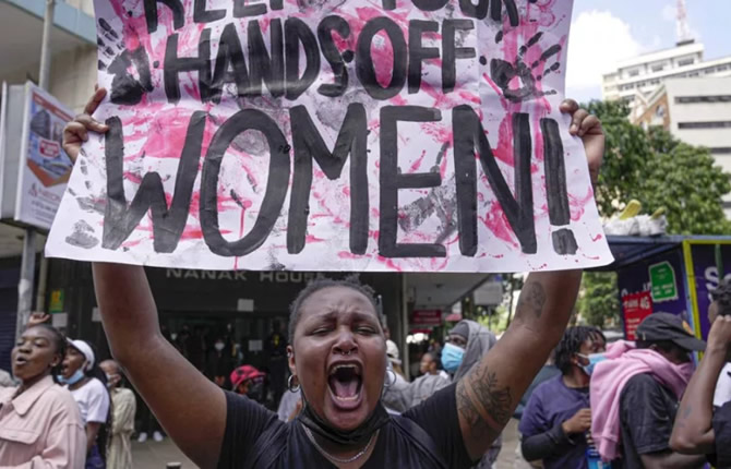 Nairobi, une manifestation contre les féminicides s’est rapidement heurtée à la police mardi. Des milliers de personnes sont descendues dans les rues de la capitale, pour dénoncer les violences faites aux femmes. 97 assassinats de femmes ont été recensés au cours des trois derniers mois au Kenya. Pendant la manifestation, les femmes ont marché jusqu’au parlement en huant et scandant des slogans tels que « Honte à vous! » et « Eduquez vos fils », et  demander aux autorités des mesures contre les féminicides. Les forces de l’ordre, en uniforme ou en civile étaient présentes en grand nombre, elles ont interrompu à plusieurs reprises le cortège en lançant des grenades lacrymogènes, un groupe de jeunes femmes arborant des t-shirts aux slogans féministes a particulièrement été ciblé. Plusieurs personnes ont été interpellées par la police.