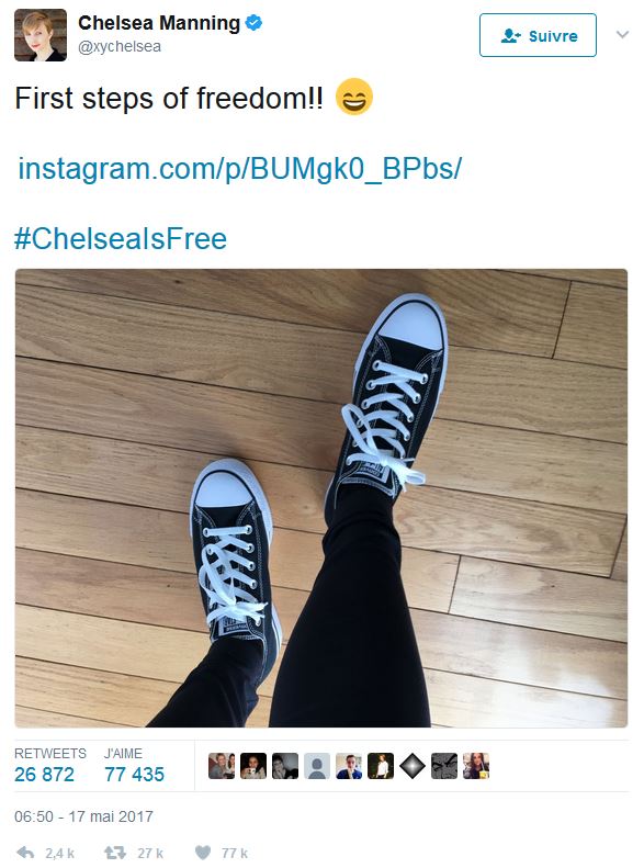 Chelsea Manning, la militaire transsexuelle emprisonnée pour avoir fourni à WikiLeaks des milliers de documents secrets, a été libérée mercredi après-midi et a quitté le pénitencier militaire de Fort Leavenworth, aux confins du Kansas et du Missouri. L’ancienne taupe de WikiLeaks avait fait fuiter plus de 700.000 documents confidentiels ayant trait aux guerres d’Irak et d’Afghanistan, dont plus de 250.000 câbles diplomatiques qui avaient plongé les Etats-Unis dans l’embarras. Condamnée en cour martiale à 35 ans de réclusion, la militaire est sortie après seulement quelques années derrière les barreaux à la faveur d’une peine commuée par l’ancien président Barack Obama, juste avant qu’il ne quitte la Maison Blanche.