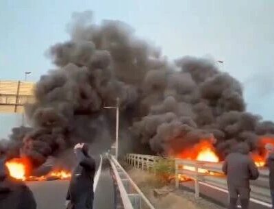 Des marins-pêcheurs ont provoqué la coupure du pont reliant l’Espagne au Portugal en brûlant des pneus, en signe de protestation contre le prix élevé du carburant.