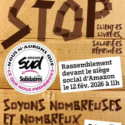 Depuis l’implantation du syndicat Solidaires dans les entrepôts d’Amazon en France, la multinationale tente systématiquement de réprimer le syndicalisme de lutte, multipliant sanctions et licenciements arbitraires pour intimider les salariés revendiquant des droits élémentaires et des conditions de travail dignes. Pour dénoncer ces pratiques et exiger la réintégration des syndicalistes sanctionnés, un rassemblement est prévu […]