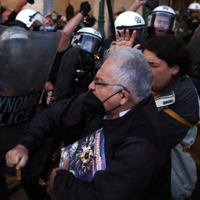 Des policiers ont violemment dispersé les enseignants qui protestaient près du parlement grec lors d’un rassemblement organisé par les syndicats d’enseignants dans le centre d’Athènes, le 6 octobre.