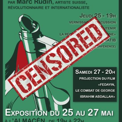 Du 25 au 27 mai, devait se tenir une exposition des affiches de la résistance palestinienne du militant et artiste Marc Rudin, organisée par le Secours Rouge Genève en collaboration avec Samidoun Genève. Cette exposition était l’occasion de rendre hommage à notre camarade décédé le 7 avril dernier, à son travail artistique et politique. À l’occasion […]
