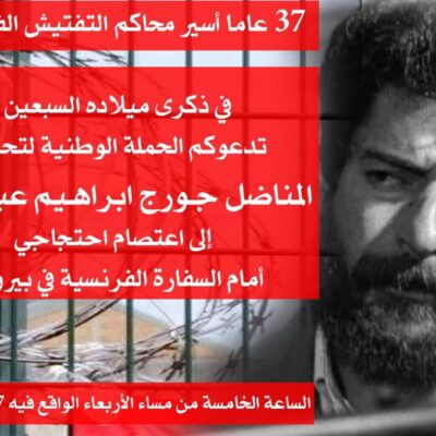 Mercredi 7 avril à 17H, la Campagne libanaise pour la libération de Georges Abdallah organise un rassemblement devant l’ambassade française à Beyrouth pour exiger la libération du plus ancien prisonnier politique d’Europe. Après la visite de la ministre de la Justice libanaise et d’un responsable de la sécurité intérieure libanaise auprès des autorités françaises, les […]