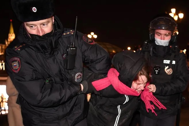 Il y aurait eu au total 13 600 arrestations dans plus de 140 villes de Russie depuis le début du conflit. Lors des arrestations, la police a passé à tabac des manifestants et utilisé contre eux des tasers. A Moscou, trois femmes ont été aspergées d’eau avant d’être frappées. Au commissariat, les personnes arrêtées sont bien souvent battues, humiliées et soumises à d’autres formes de mauvais traitements. Beaucoup ont déclaré qu’elles n’ont pas eu l’autorisation de consulter un avocat et ont été privées de nourriture, d’eau ou de literie. Dans un cas particulier, au poste de police de Brateyevo à Moscou le 6 mars, une manifestante a enregistré un policier en train de la menacer : « On va tous vous tuer ici et c’est tout. Nous aurons une autre récompense pour ça », alors qu’elle était tirée par les cheveux et frappée au visage.