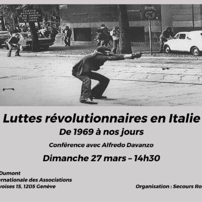 CONFERENCE : LES LUTTES REVOLUTIONNAIRES EN ITALIE, DE 1969 A NOS JOURS. Alfredo Davanzo est un ouvrier turinois qui a commencé son engagement révolutionnaire dans l’autonomie des années ’70. Emprisonné dans les années 1980, il continue ensuite à militer dans des structures clandestines. En 2007, il est arrêté en temps que militant du projet Parti […]