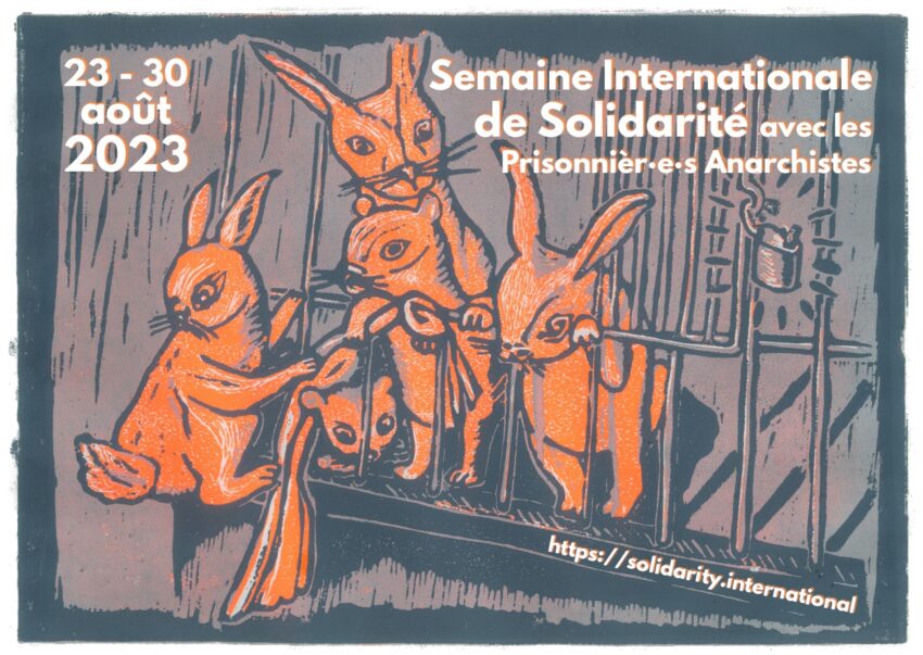 Un nouvel appel à une Semaine internationale de solidarité avec les prisonnier.es anarchistes invite à la réalisation d’initiatives de solidarité du 23 au 30 août: que ce soit écrire des lettres, organiser des discussions ou de projections de films, ou rendre les prisonnier.es visibles dans la rue avec une banderole ou un tag. Lire le texte de l’appel et consulter la liste des prisonniers et leurs adresses