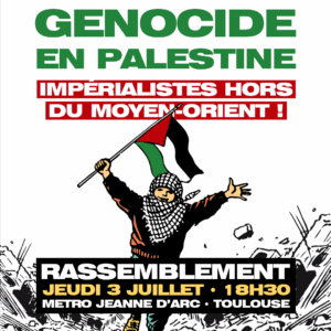 À l’appel du Comité de soutien à la Palestine, un rassemblement est organisé ce jeudi 3 juillet à 18H30 au métro Jeanne d’Arc pour dénoncer le génocide en cours en Palestine et les interventions impérialistes dans la région (voir ici). En plus de dénoncer la complicité de la France avec l’opération génocidaire qui se poursuit […]