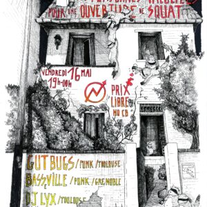 Le vendredi 16 mai de 19h à minuit à L’Impasse (1 Impasse Lapujade, Toulouse), soirée de soutien pour payer les frais de justices de personnes inculpé·es pour une ouverture de squat. Au programme : concerts, bar, DJ, crêpes, infokiosque, cantine, etc.