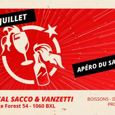 Le prochain apéro du Sacco-Vanzetti se tiendra le samedi 3 juin à partir de 19h au local Sacco-Vanzetti (chaussée de Forest, 54, 1060 Saint-Gilles).