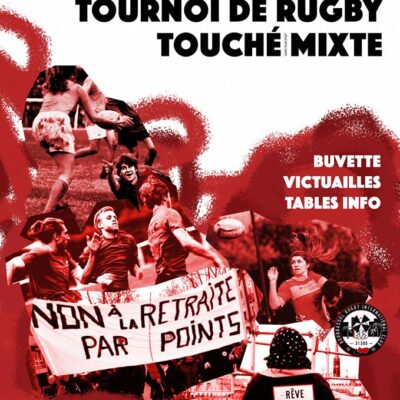 Samedi 29 février à Toulouse, la BRIC (Bourrassol Rugby International Club) organise un tournoi de rugby touché mixte solidaire. Les fonds récoltés serviront aux caisses de grève des cheminots et des intermittents. L’inscription au tournoi est gratuite et peut se faire par mail (bourrassol.rugby@gmail.com) ou sur place à partir de 12h30. Plusieurs tables d’infos seront […]
