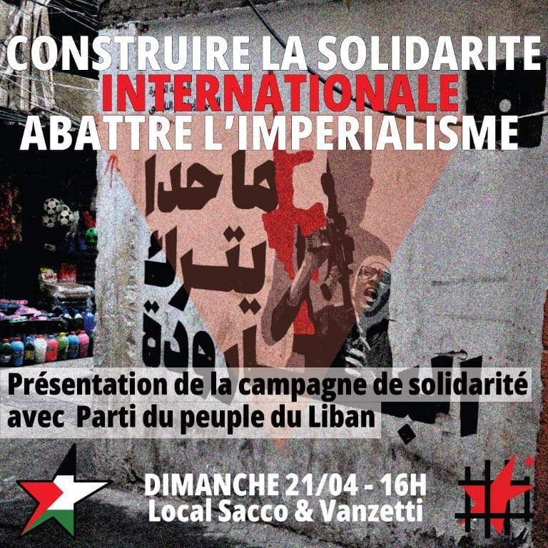 La délégation qui en 2023 s’est rendu au Liban pour rencontrer différentes factions de la résistance palestinienne, présentera sa visite ce dimanche 21 avril à 16H, au Local Sacco & Vanzetti. Cette présentation marquera le lancement de la campagne de solidarité internationale avec le PDP.