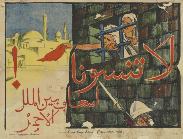 Affiche en arabe du SR de France: « Ne nous oubliez pas ! »