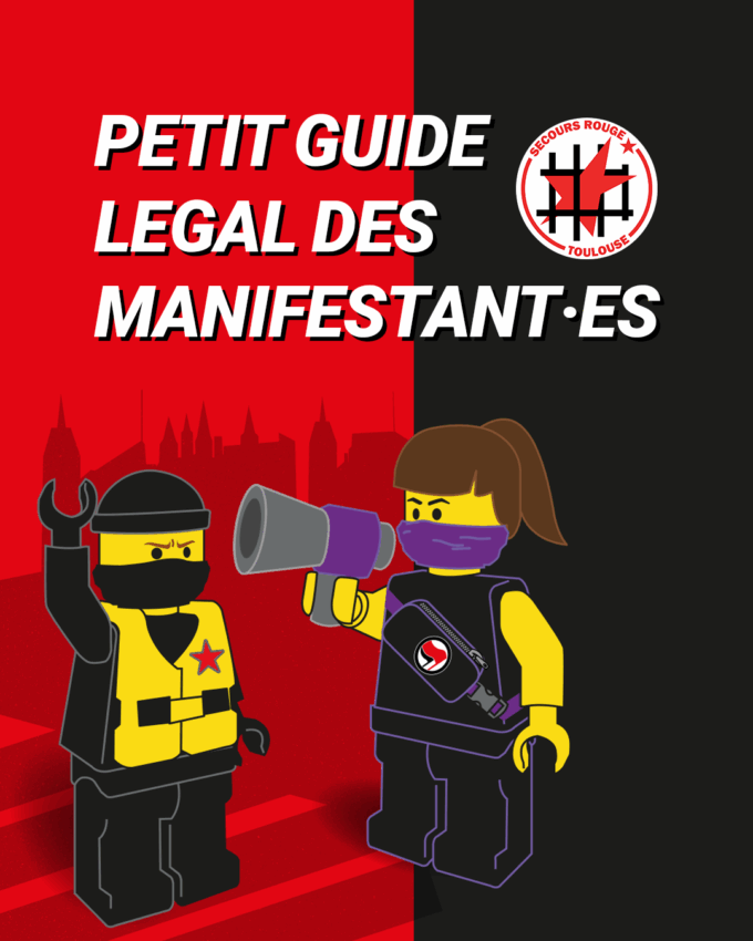 Pour le 22 novembre à Toulouse, voici les noms d’avocates disponibles en cas d’arrestations : Charlotte Cambon, Océane Chotel et Antoine Ramognino. Pour désigner un·e avocat·e en garde à vue, vous avez juste besoin de son nom et son barreau. Vous pouvez désigner un de ces avocat·es du barreau de Toulouse. Si absent·es, prenez le/la commis d’office et on n’oublie pas : on a rien à déclarer ! Voir aussi notre « Petit guide légal des manifestant·es ».