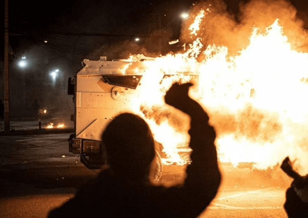 Les commémorations du 11 septembre au Chili, 50 ans après le coup d’État, ont donné lieu à plus de 360 cas de démonstrations dans le pays, parmi lesquels on trouve des dizaines de barricades, d’actions directes, des jets de cocktails Molotov et des feux d’artifice et aussi, à certaines endroits, des réappropriation (pillages), des rafales de coups de feu contre les policiers et des bus brûlés. Des actions qui se sont produites surtout à Santiago dans les quartiers emblématiques de Villa Francia, Lo Hermida, Cerro Navia, La Victoria, San Bernardo, La Pincoya et Recoleta. Mais des actions ont été constatées aussi à Puente Alto, Maipú, Melipilla, La Granja, La Pintana, Ñuñoa, Lo Espejo, Valparaíso et Concepción, parmi beaucoup d’autres endroits. 14 policiers ont été blessés, 8 commissariats attaqués, 7 bus incendiés, 5 véhicules des forces répressives endommagés. 108 personnes ont été interpellées, pour la plupart en lien avec des troubles à l’ordre publique, 21 personnes devront faire face à des poursuites judicaires. Une manifestantes a été blessée à l’œil par des chevrotines tirés par la police. Au moins six 6 autres personnes ont été blessées.