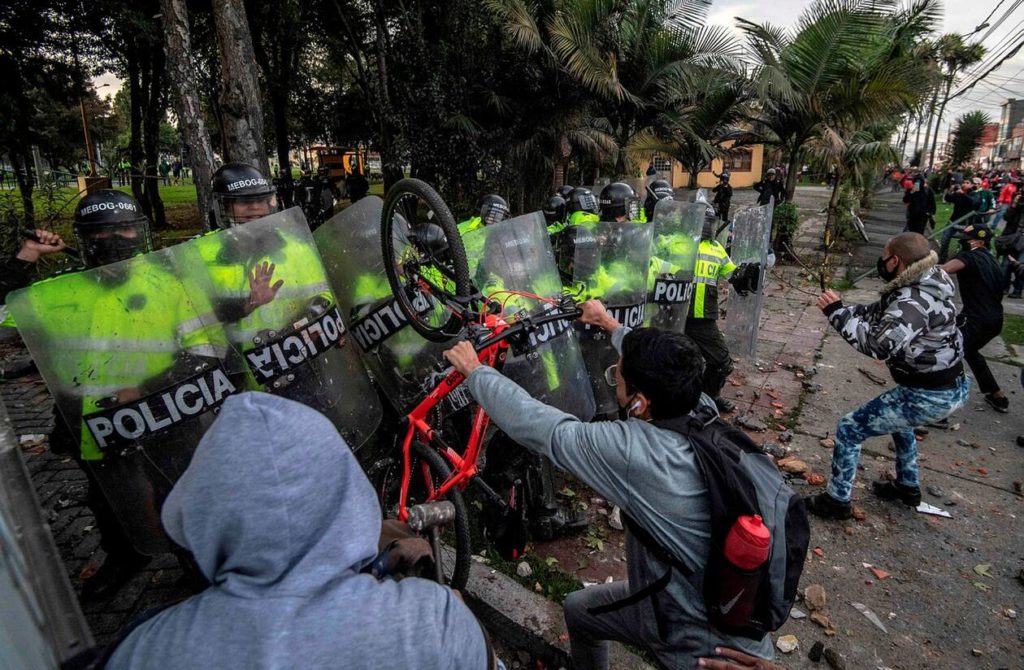 Dans l’après-midi, des centaines de personnes se sont rassemblées pour protester devant le poste de police où la victime a été emmenée avant de mourir. Les manifestants ont aspergé de peinture rouge la façade de l’immeuble et lancé des pierres en scandant «résistance». La police a tenté de disperser la foule avec des grenades assourdissantes et des gaz lacrymogènes mais les protestations se sont étendues à d’autres quartiers de Bogotá. Des émeutes, des incendies et d’autres attaques contre 56 commissariats de police ont eu lieu dans le nord et l’ouest de la capitale mais aussi à Medellín, Barranquilla, Popayan, Cali et Neiva. Sept personnes ont été tuées lors de ces émeutes et 70 personnes ont été arrêtées pour « violence contre les forces de l’ordre ».