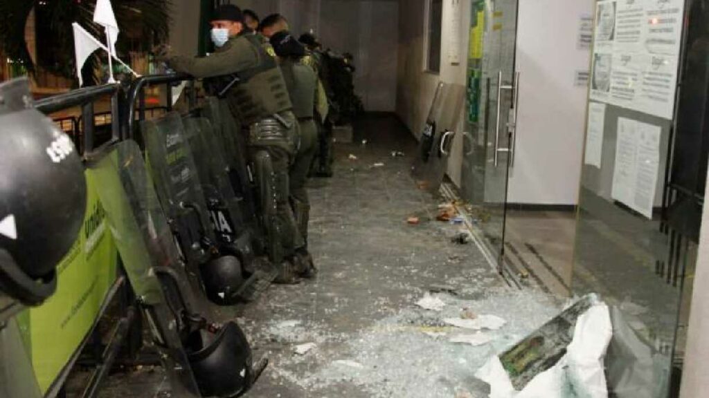 Les mobilisations antigouvernementales ne cessent pas en Colombie. Mercredi, une manifestation qui s’est déroulée à Floridablanca, Santander, s’est terminée par l’attaque de la mairie (photo). Le même jour, la manifestation ayant lieu dans le quartier « Sena Norte » de la ville de Popayán a donné lieu à de violents affrontements entre les manifestants et les policiers des Escouades mobiles anti-émeutes, les Esmad. Deux localités de la métropole, Bogota, ont également été le théâtre d’affrontements: les municipalités de Suba et d’Usme. Les manifestants ont bloqués des routes, détruits des bus et affrontés la police. Hier vendredi, c’est dans le quartier « 20 de Julio » de Bogotá que des manifestants se sont affrontés aux Esmad.