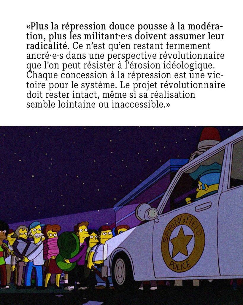 Plus la répression douce pousse à la modération, plus les militants doivent assumer leur radicalité. Ce n’est qu’en restant fermement ancrés dans une perspective révolutionnaire que l’on peut résister à l’érosion idéologique. Chaque concession à la répression est une victoire pour le système. Le projet révolutionnaire doit rester intact, même si sa réalisation semble lointaine ou inaccessible.