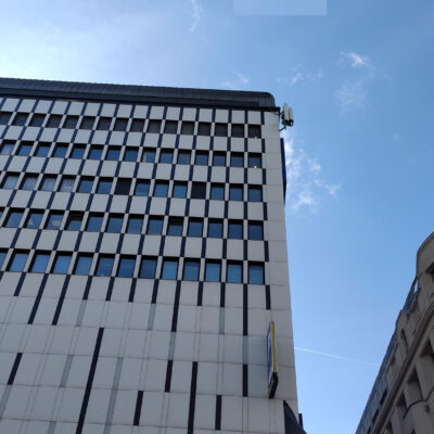 Police stationnée derrière le parking de l'Office des Étrangers