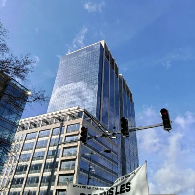 Drone au-dessus du bloc Smash Bedex. Le bloc est photographié abondamment par la police en civil.