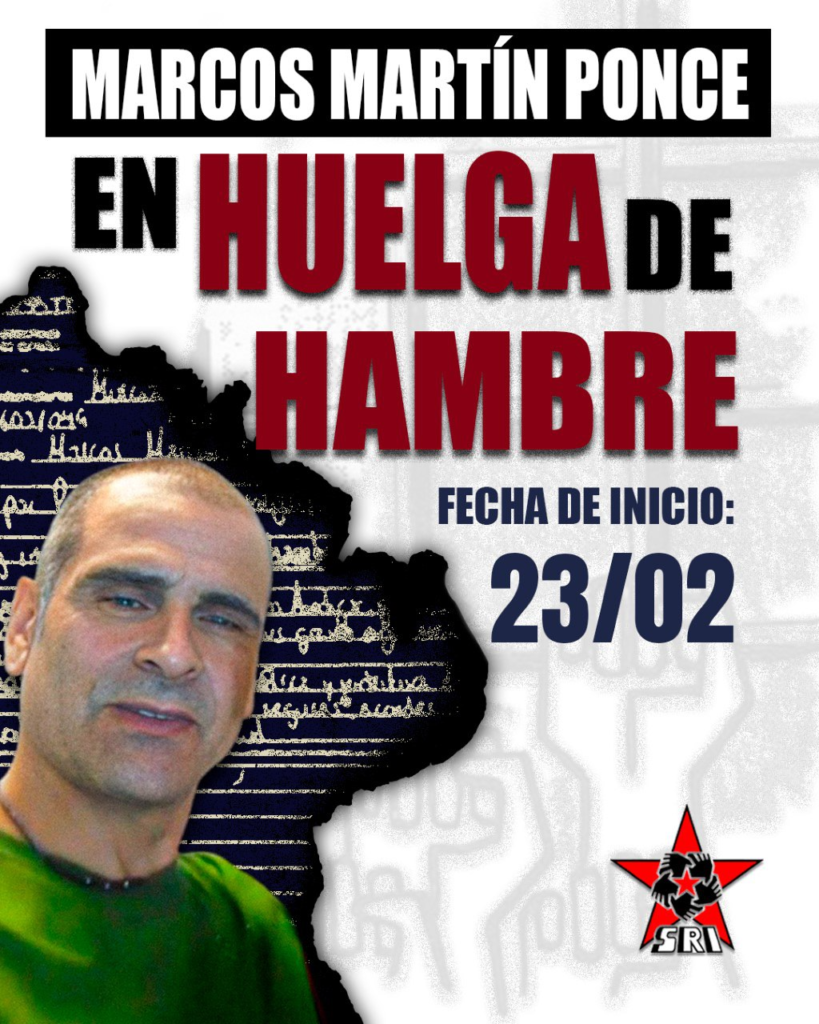 Prisonnier antifasciste des GRAPO (Groupes de résistance antifasciste du premier octobre) qui purge une peine de prison à perpétuité, Marcos Martín Ponce a entamé le 23 février une grève de la faim illimitée pour dénoncer le refus des autorités espagnoles de garantir des soins médicaux appropriés à la prisonnière antifasciste María José Baños Andújar (voir notre article).