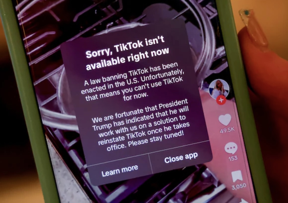 TikTok a rendu inaccessible son application en ligne samedi, mettant à exécution sa menace faute de garanties du gouvernement Biden. « Une loi interdisant TikTok a été mise en application aux États-Unis », dit un message en cas de tentative de connexion, « Cela signifie que vous ne pouvez plus utiliser TikTok pour l’instant. Nous avons la chance que le président Trump ait indiqué qu’il allait travailler avec nous à une solution pour rétablir TikTok une fois entré en fonction », poursuit le texte. « Restez branchés! »