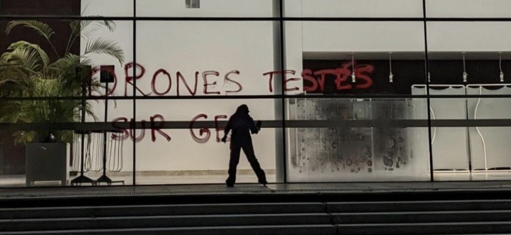 Le 15 octobre dernier à Bordeaux, la ville accueillait un salon baptisé « UAV show », le salon européen du drone. Pour dénoncer le test des drones lors du génocide à Gaza, des clous ont été lancés devant les entrées, de la peinture rouge jetée ainsi que des tags peints proclamant «Free Palestine» sur la façade du Palais des Congrès. Le drone facilite une mise à mort de masse toujours plus confortable pour les militaires. Ôter des vies sans combattre, voir sans être vu, frapper sans risque, à l’abri dans un centre opérationnel loin du front. Désormais partout, il permet de tuer à distance, avec une précision, une certitude extrême. Le drone apporte à la guerre moderne le degré suprême de barbarie technologique.