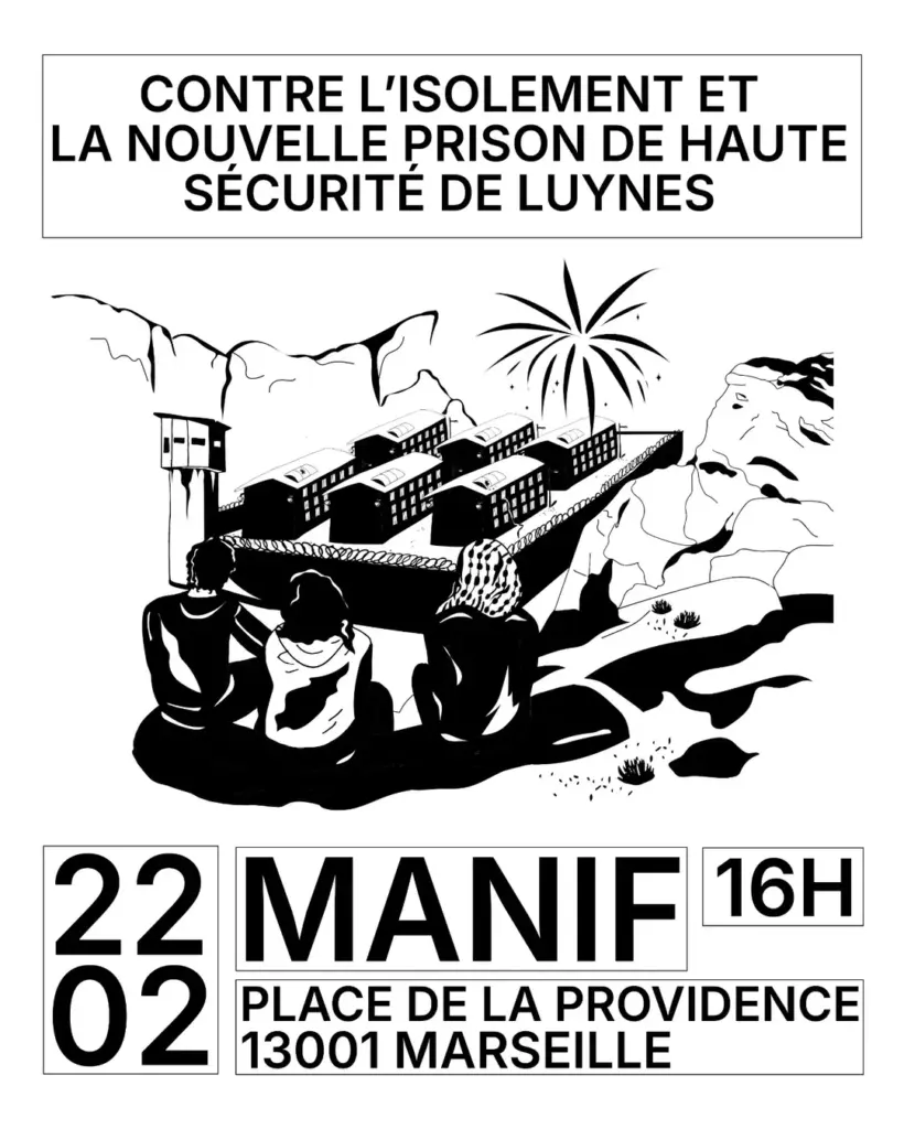 Une manifestation est annoncée le 22 février à 16h, Place de la Providence, à Marseille, pour dénoncer les conditions d’enfermement et les projets d’extension de la Prison des Baumettes ainsi que la nouvelle structure de haute sécurité du Centre pénitentiaire d’Aix-Luynes. Les organisateurs entendent aussi protester contre les rafles, le harcèlement policier dans les quartiers populaires et l’isolement des détenus, tout en affirmant leur solidarité avec les prisonniers et leurs proches confrontés aux conséquences sociales et humaines de l’incarcération.