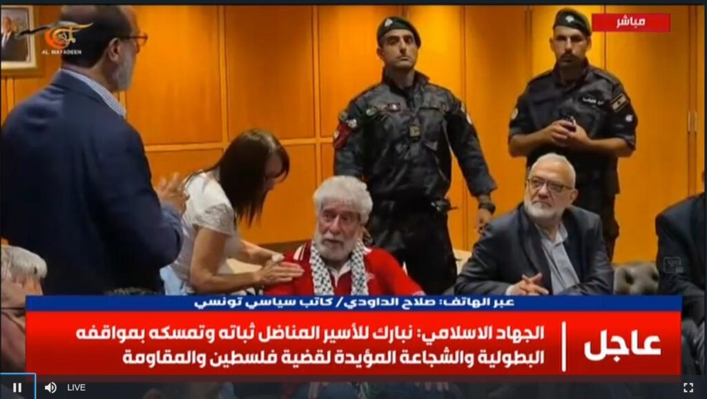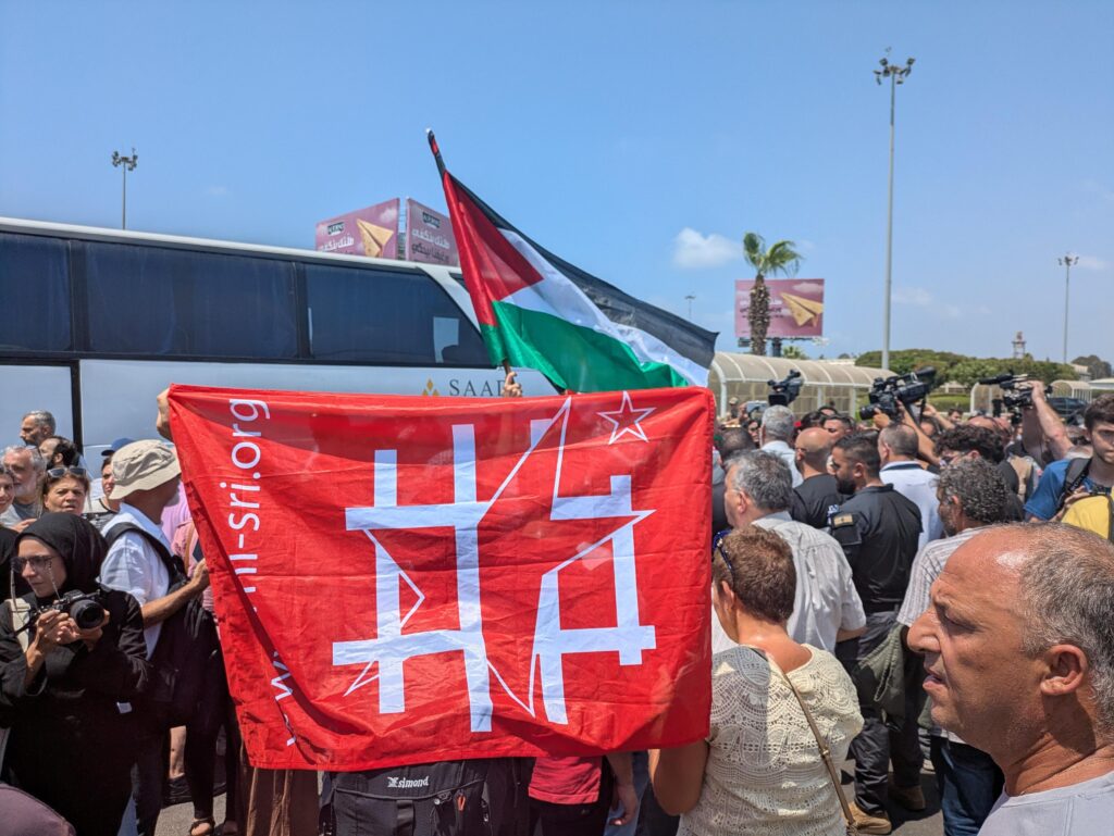 15h30 heure locale : Georges est sorti de l’aéroport, un keffieh autour du coup et poing levé. Il a salué la foule et a appelé à poursuivre la mobilisation pour la Palestine.