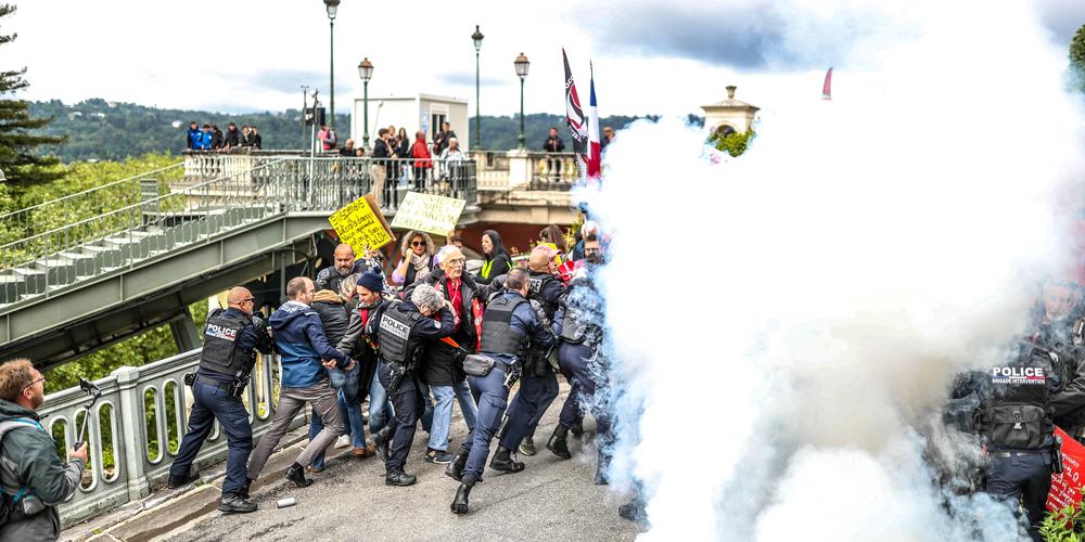 Des heurts se sont produits au moment où 150 à 200 manifestants ont souhaité pénétrer sur le circuit urbain du Grand Prix de Pau pour faire entendre leur opposition à la loi sur les retraites. La police a immédiatement barré la route et des heurts ont éclaté entre les policiers et les premiers rangs tentant de forcer le passage. Après quelques minutes de confusion, la police a fait usage de gaz lacrymogènes qui ont touché militants mais aussi spectateurs. Un groupe d’une cinquantaine de militants s’est rendu vers l’autre entrée au secteur fermé du Grand Prix, mais n’ont pas tenté de forcer le nouveau barrage de police qui se dressait face à eux. Finalement, des manifestants sont parvenus à emprunter des escaliers qui menaient à un paddock en contournant deux agents de sécurité de la course. Les policiers ont été mobilisés afin d’appréhender ces derniers manifestants, mais ils n’ont procédé à aucune interpellation.
